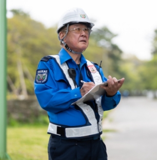 交通誘導の仕事は、すべての人の「命」を預かる仕事です。何よりも大切なのは「基本動作の徹底」と「危険を未然に防ぐ意識」。常に冷静に、状況に応じた判断ができるよう心を整えて業務に取り組んでいます。